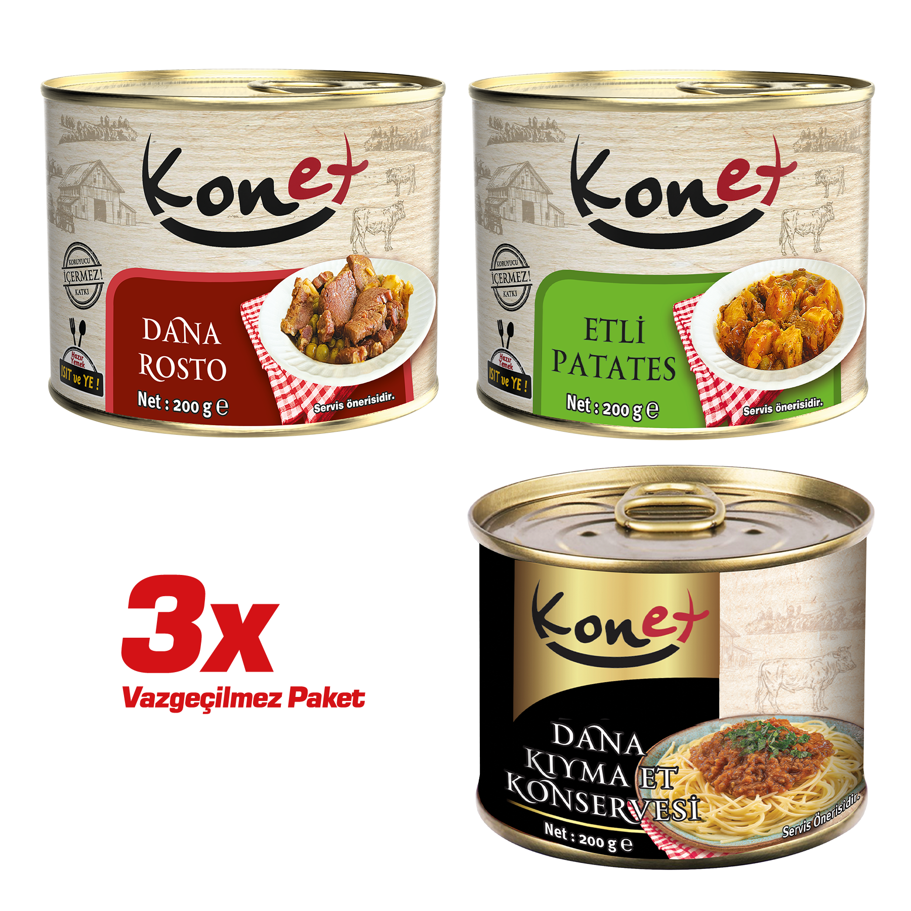 Hemen sipariş verin ve KONET 3'lü Vazgeçilmez Lezzetler Paketi ile sofralarınıza lezzet katın! Klasiklerden vazgeçemeyenler için ideal.